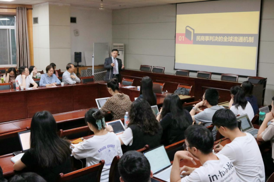 在互动环节,徐国建教授从专业角度为大家解答了疑惑。最后,王瀚教授和刘亚军院长分别对本次学术报告活动做了总结。徐国建教授作为海牙国际私法会议判决公约项目中国谈判代表,理论研究和实践经验丰富,其讲授对于准确理解公约具有重要意义。本次报告会精彩纷呈,讲述富有感染力,大家受益良多。