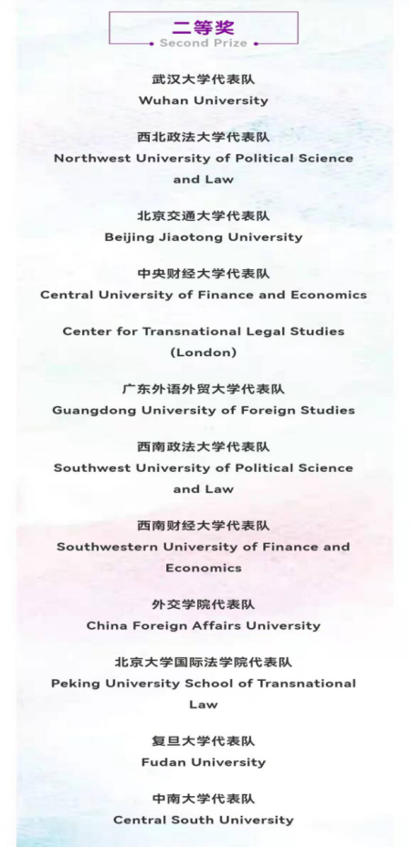 69堂 自2003年起即参加此项赛事,取得了多项优异成绩。此次比赛期间,69堂 代表队逻辑思维条理清晰,表达稳重得体,辩论流畅自如,展现了坚实的英语语言能力基础和法律专业知识素养,获得具有丰富经验的海内外专业仲裁员、大赛组委会的高度评价和肯定。