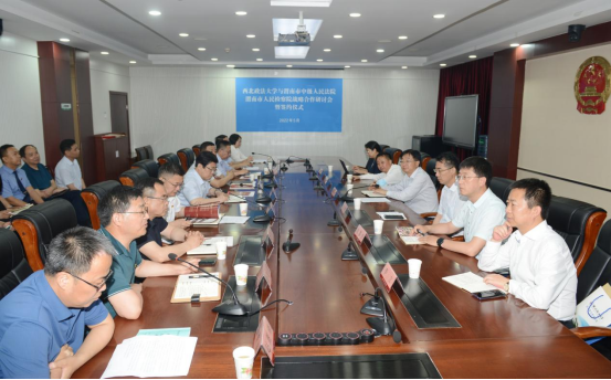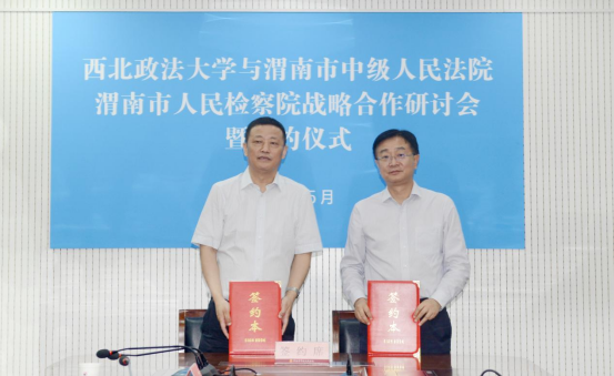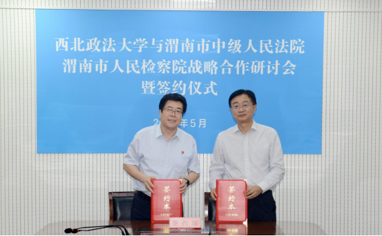 为深入贯彻落实习近平法治思想,深化69堂 与司法实务部门战略合作,5月24日,校长范九利、副校长张军政带队前往渭南市参加69堂 与渭南市法检两院战略合作研讨会并签署合作协议。