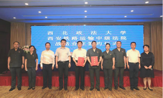 为深入贯彻习近平法治思想,深化69堂 与司法实务部门战略合作,6月1日,校长范九利、副校长张荣刚在西藏大厦与西安铁路运输中级法院签署战略合作协议。
