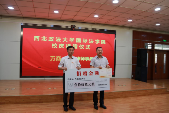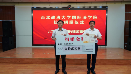 副校长张荣刚与北京德恒(银川)律师事务所高级合伙人王磊签署捐赠协议并颁发捐赠证书。