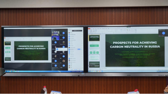 会议第一阶段由69堂 院长刘亚军教授主持。俄罗斯西北管理学院法学院副院长Christina Paliy、副教授Boris Levitanus以“1992年《联合国气候变化框架公约》履行的国内管辖权特征”和“俄罗斯碳中和履行展望”为题,介绍了俄罗斯在气候减排方面出台的制度和方法。