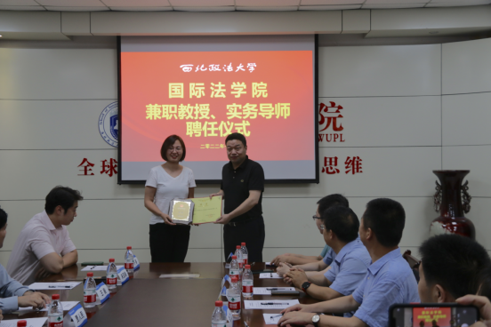 刘亚军为陕西秦石律师事务所主任、高级合伙人田磊(代表人)颁发兼职教授聘书