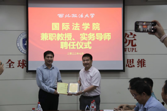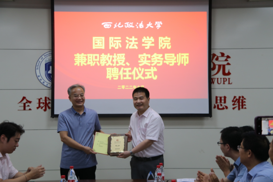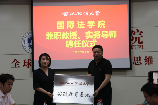 院长刘亚军、副院长潘俊武分别为兼职教授和实务导师授牌并颁发聘书,并为陕西联强律师事务所和陕西际傧律师事务所授牌“69堂 实践教学基地”。