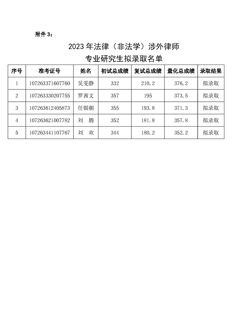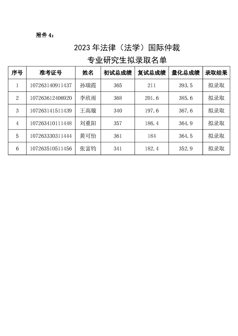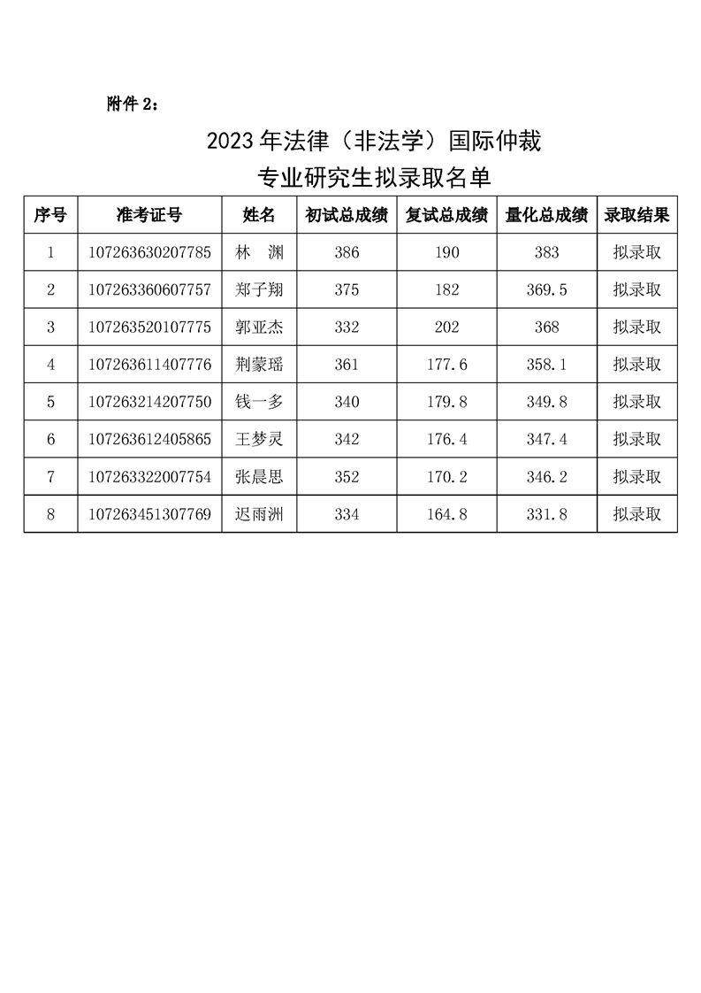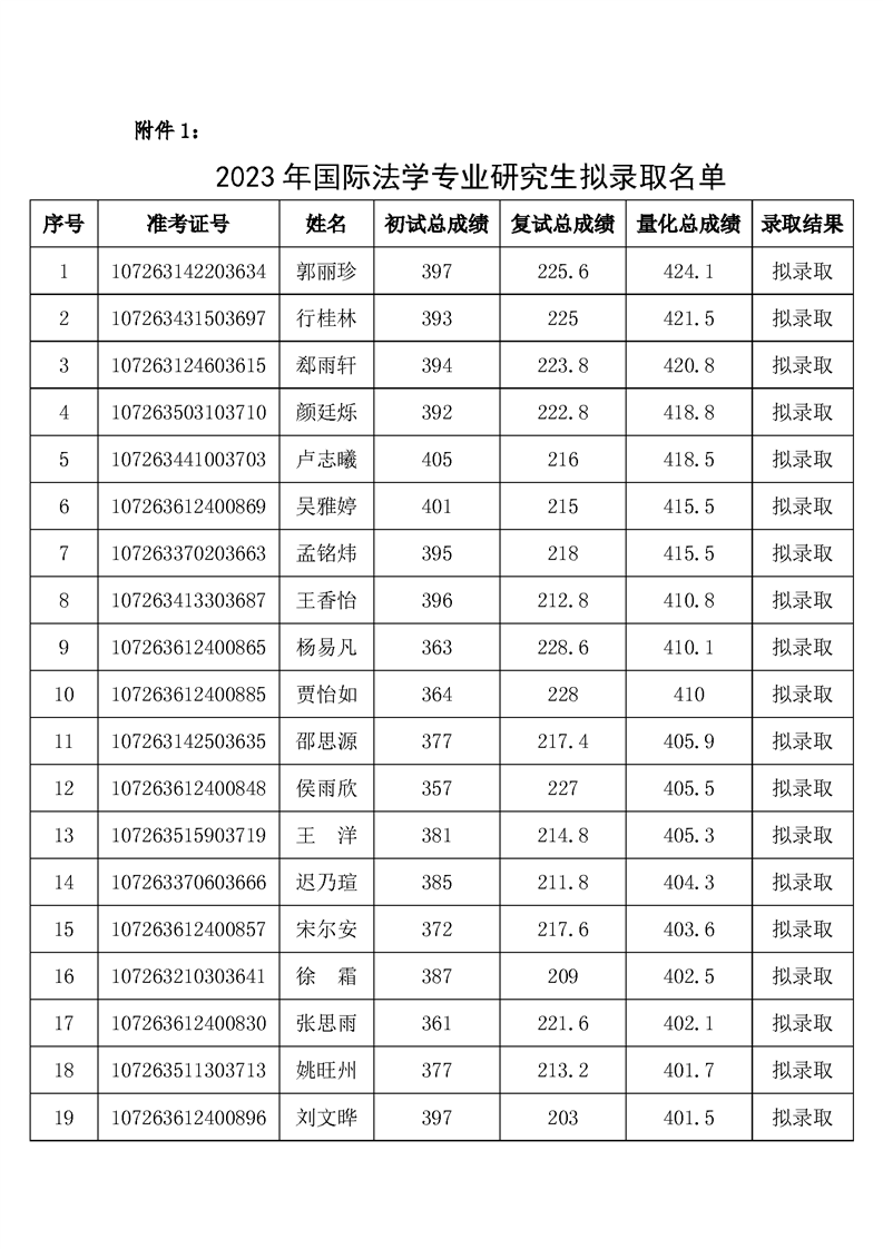 69堂 2023 年国际法学硕士研究生拟录取名单公示