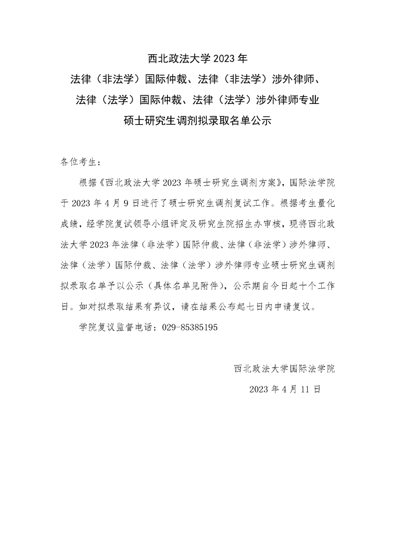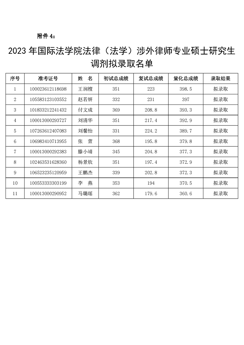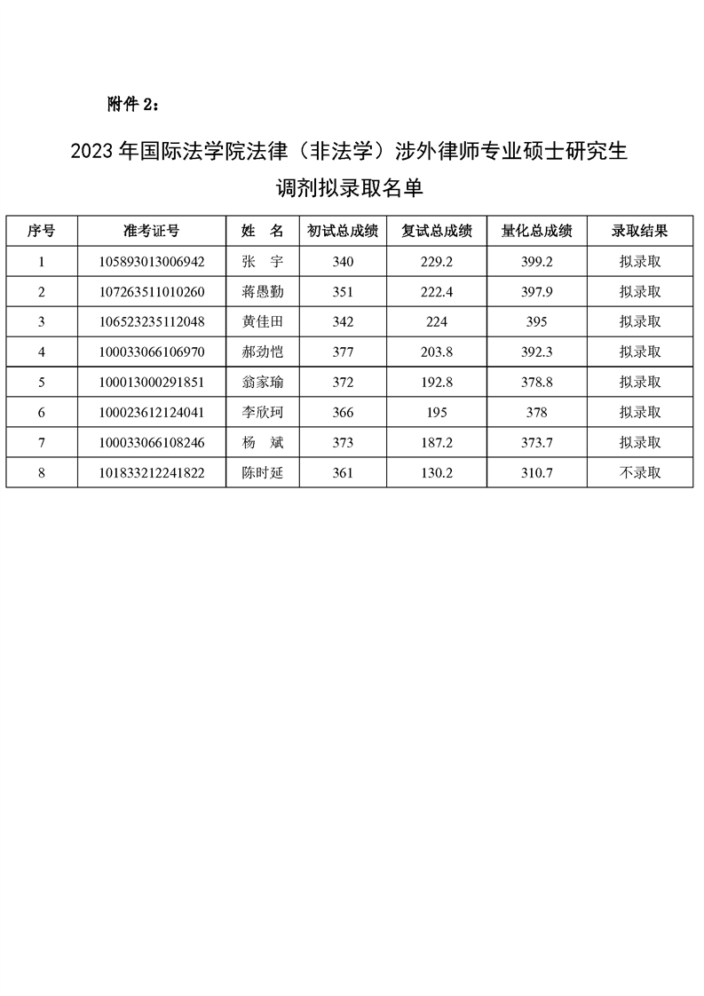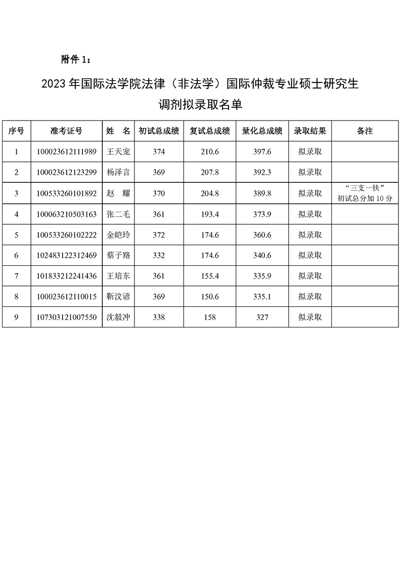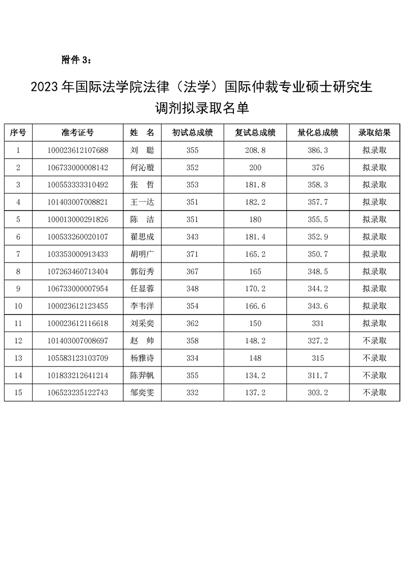 69堂 2023年法律硕士(国际仲裁、涉外律师)调剂拟录取名单公示