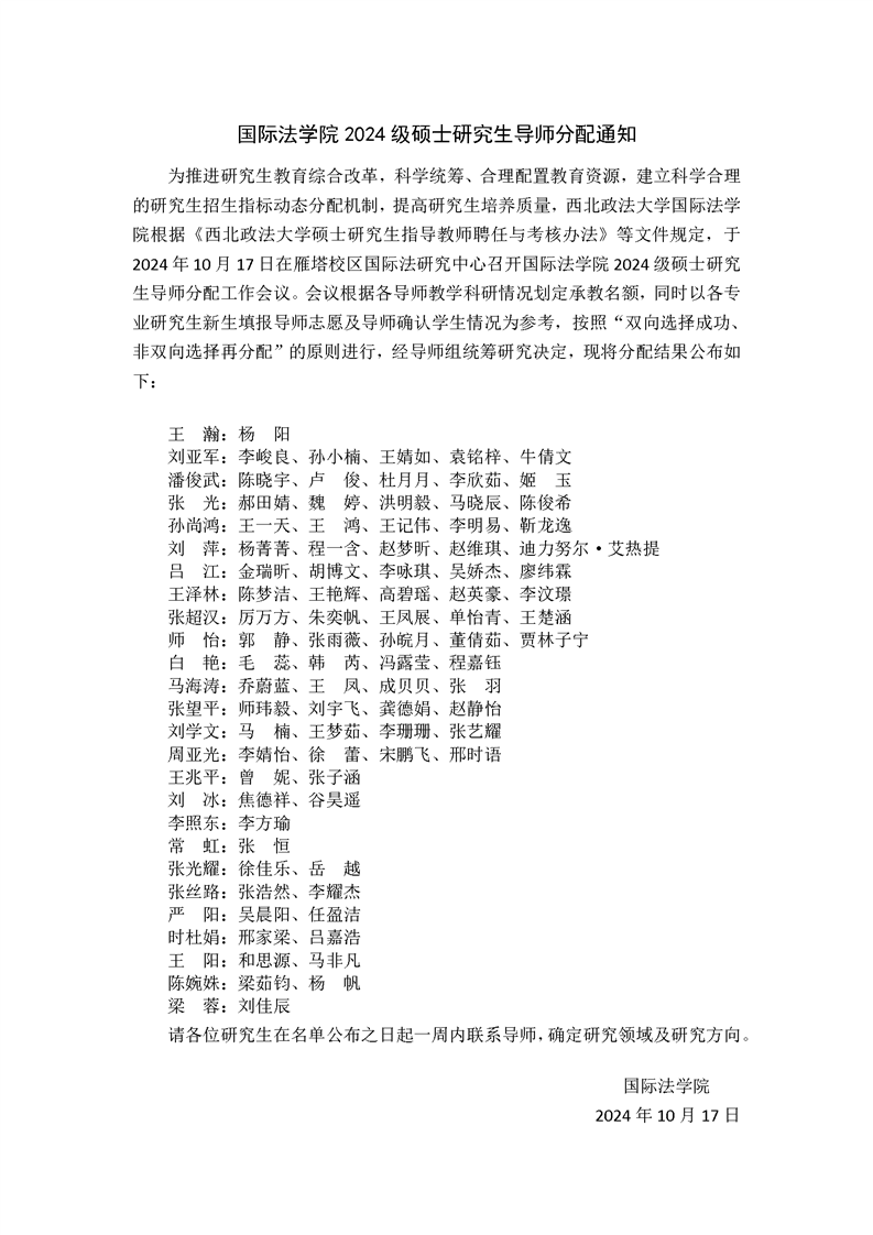 2024级‘涉外法治人才协同培养创新基地班’学生遴选公示