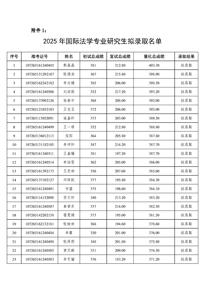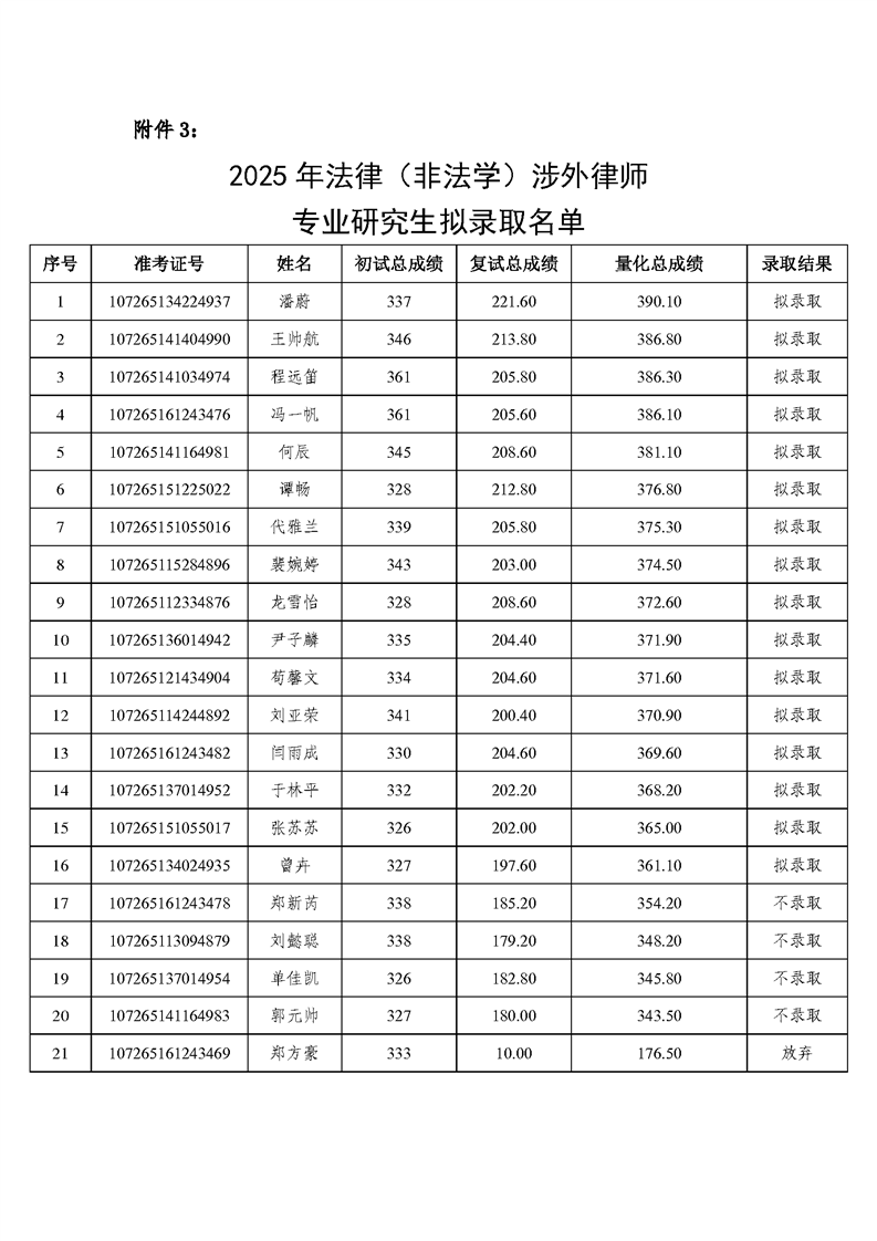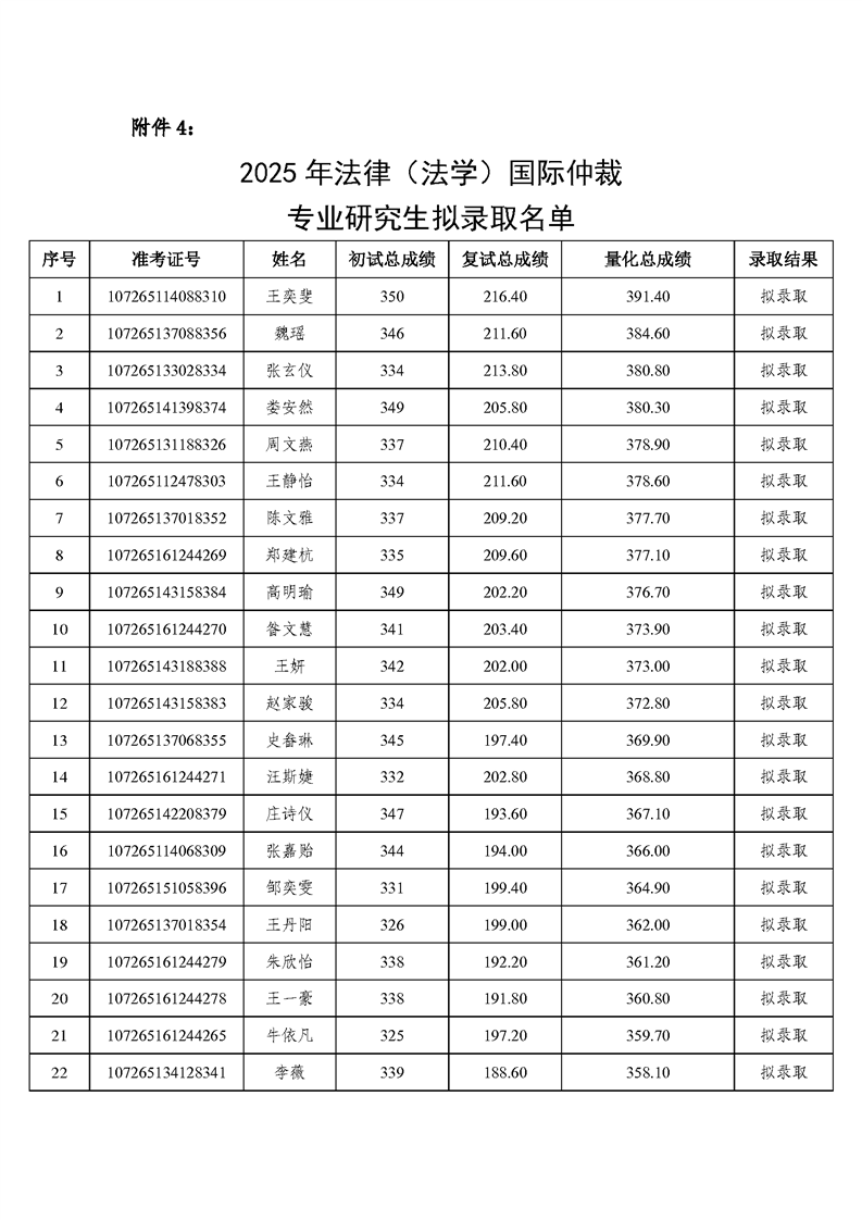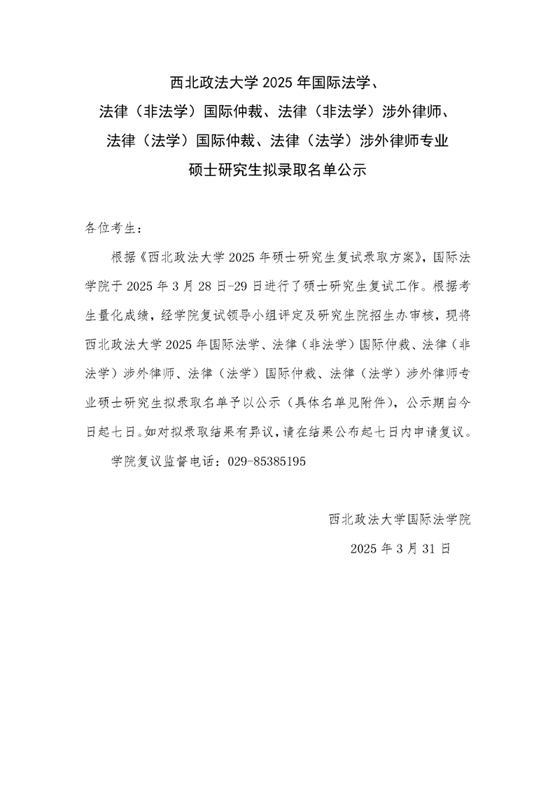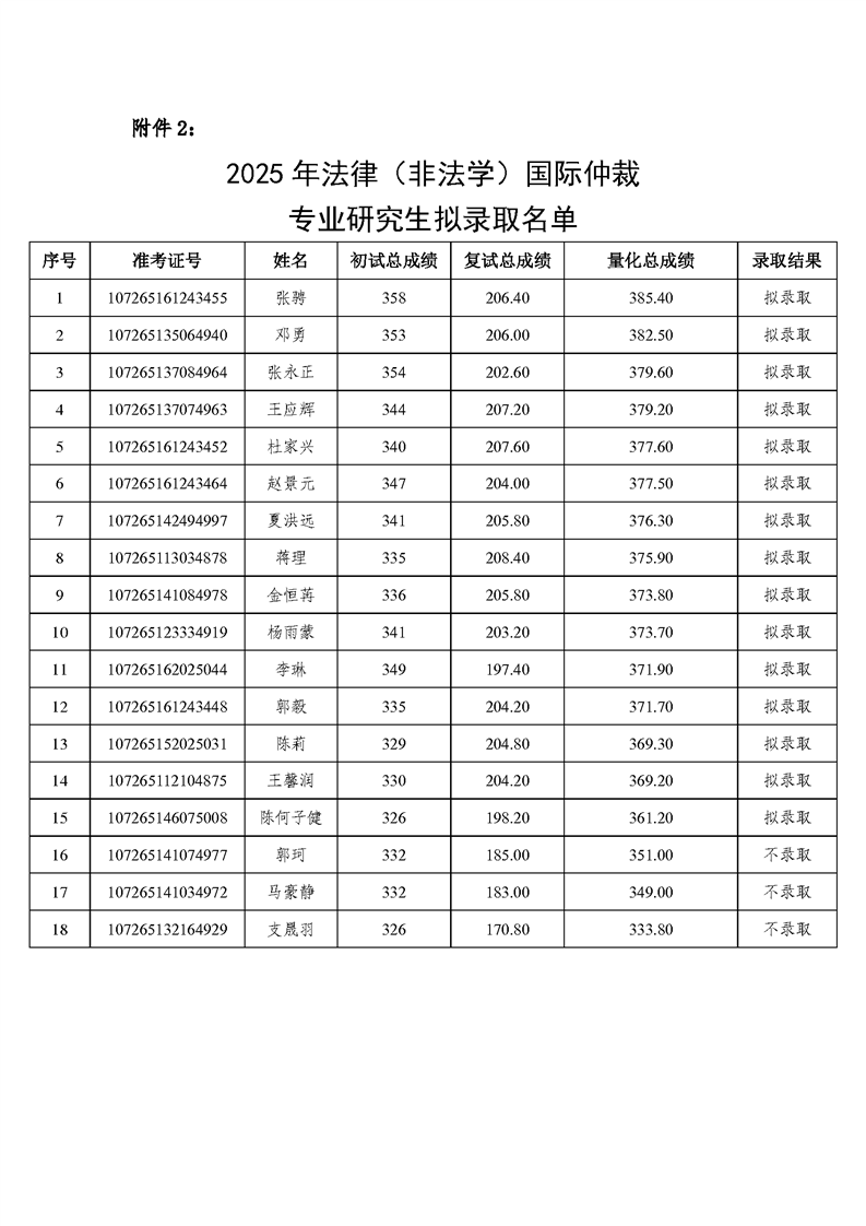 69堂 2025年国际法学、法律(非法学)国际仲裁、法律(非法学)涉外律师、法律(法学)国际仲裁、法律(法学)涉外律师专业硕士研究生拟录取名单公示