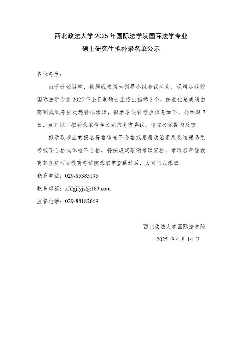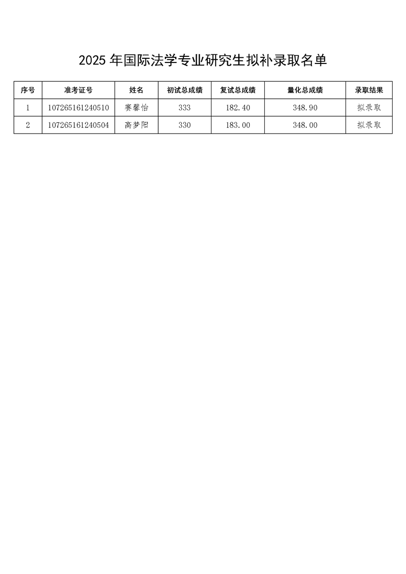 69堂 2025年69堂 国际法学专业硕士研究生拟补录名单公示