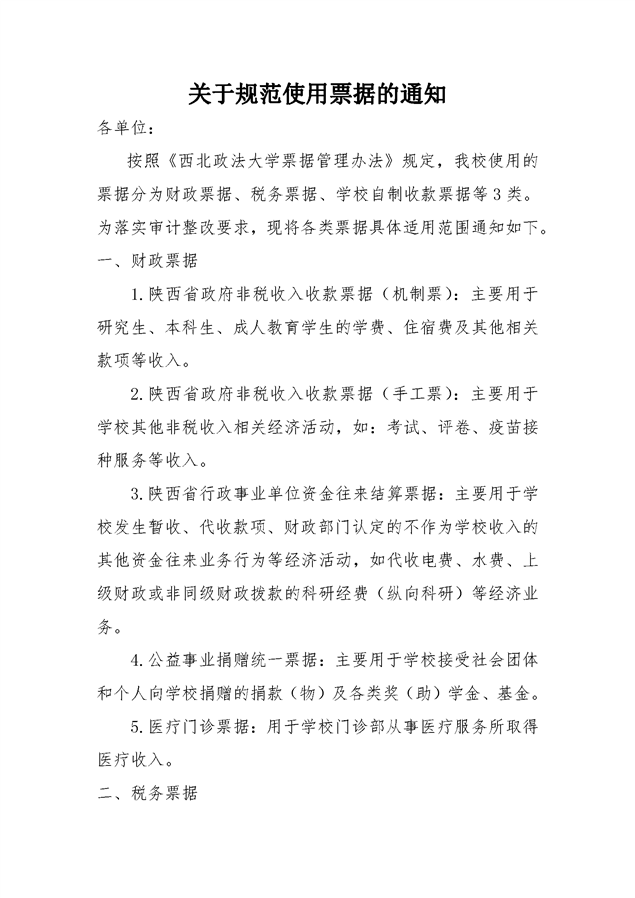 关于规范使用票据的通知