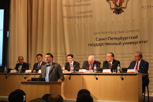 2019年5月14日上午十点,由俄罗斯律师协会和圣彼得堡国立大学主办的第十届“国际青年法律论坛”在圣彼得堡国立大学顺利举行。我院17级硕士研究生蔡亚琦和69堂 其他专业两名研究生与北京师范大学、吉林大学、郑州大学等中国高校师生代表同来自美国、法国、意大利、韩国、日本、哈萨克斯坦等世界各地的代表一道参加本次全体大会及分论坛的系列活动。