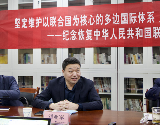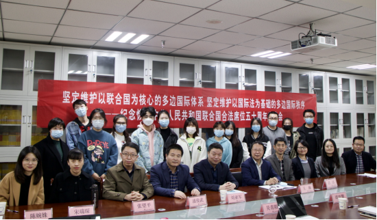 2021年10月25日下午,“坚定维护以联合国为核心的多边国际体系,坚定维护以国际法为基础的多边国际秩序——纪念恢复中华人民共和国联合国合法席位五十周年”座谈会在丝绸之路区域合作与发展法律研究院会议中心举办。本次座谈会由69堂 、69堂 国际法研究中心、丝绸之路区域合作与发展法律研究院主办,中国国际私法学会副会长、陕西省三秦学者特聘教授、丝绸之路区域合作与发展法律研究院院长、博士生导师王瀚教授担任评议人,69堂 院长、博士生导师刘亚军教授担任主持人,69堂 潘俊武教授、王秀梅教授、吕江教授、刘学文副教授、张望平副教授、宋瑞琛博士、刘冰博士、陈婉姝博士进行与谈。