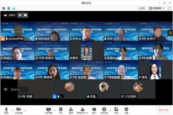 此次答辩过程包括论文陈述和回答提问两个环节,答辩学生从选题背景、论文结构、写作方法、创新与不足几个方面进行陈述,答辩委员随后进行点评和提问,同时就论文中存在的主要问题提出了修改意见和建议。整个答辩过程组织有序、程序规范、师生交流融洽,取得了较好的效果。此次答辩是一次线上线下相结合方式的新的尝试,经过全体老师和学生的努力,此次答辩工作圆满结束,全体学生通过答辩。